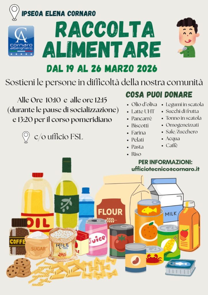 Con questo spirito e al fine del conseguimento delle finalità sopra esplicitate, a partire da giovedì 19 marzo fino a giovedì 26 marzo 2026 in Biblioteca, durante le pause di socializzazione sarà possibile donare prodotti alimentari a lunga conservazione (ad esempio lattine di tonno o legumi, pasta, riso, legumi secchi, olio, omogeneizzati o farine per la prima infanzia) per sostenere le famiglie bisognose della comunità di Jesolo.
