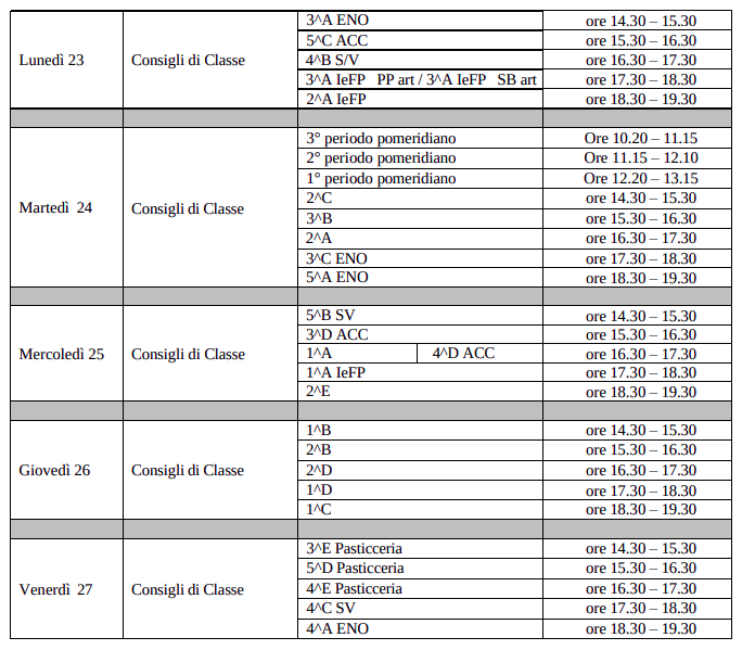 In allegato: schema orario delle riunioni.