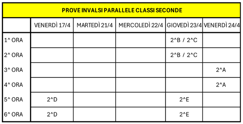 Nell’ambito delle prove per classi parallele previste dal dipartimento di Area Umanistica, si terranno le simulazioni INVALSI di italiano per tutte le classi seconde del corso diurno secondo il seguente calendario: