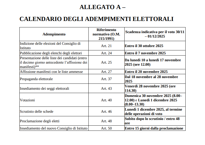 le elezioni del Consiglio di Istituto per il triennio 2025/2026 – 2026/2027 – 2027/2028, che si svolgeranno nei seguenti giorni: