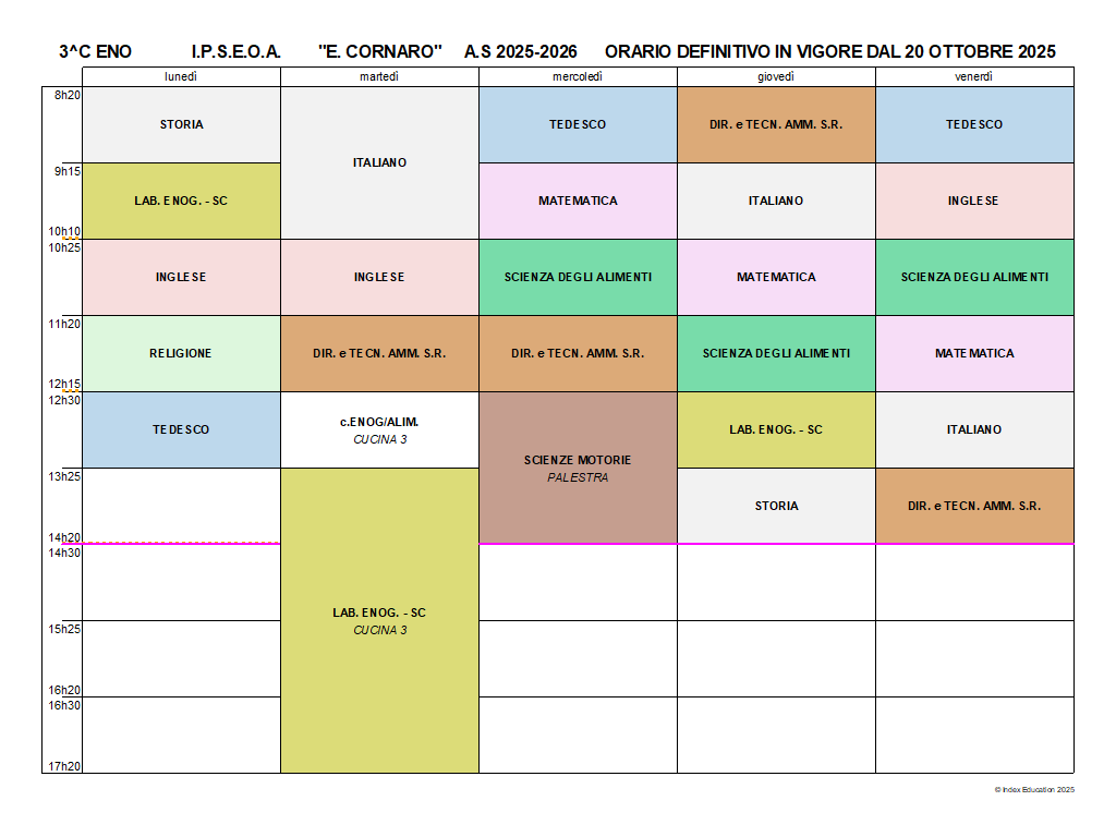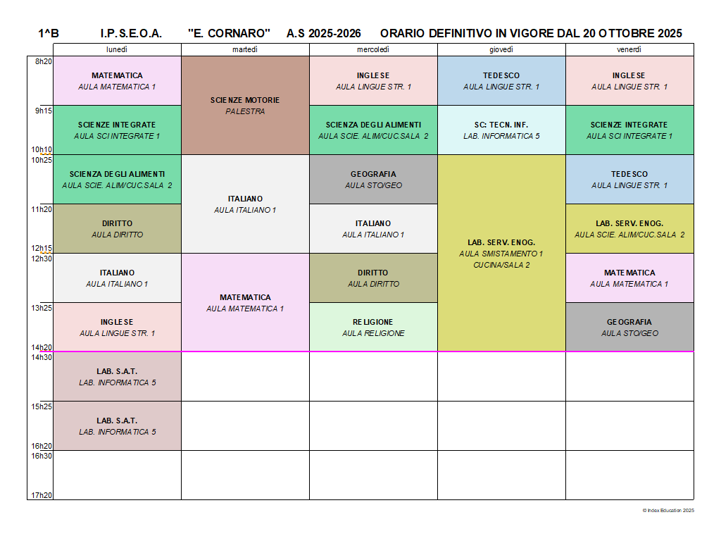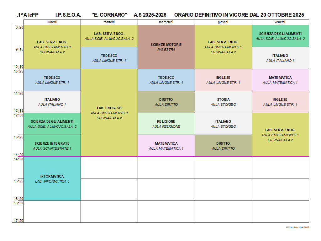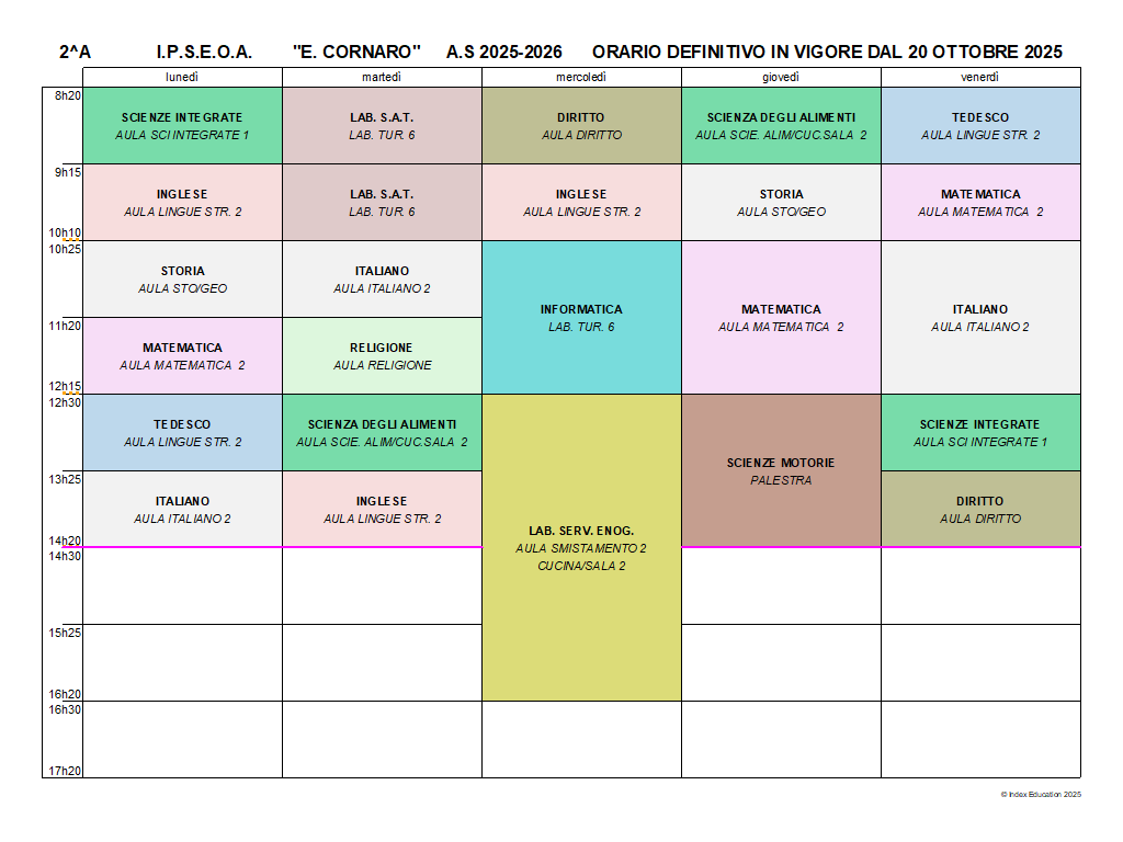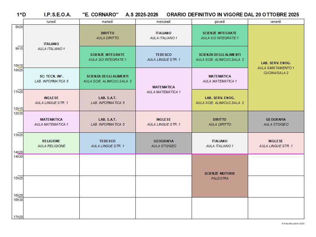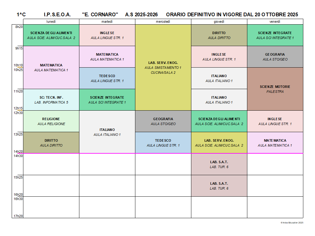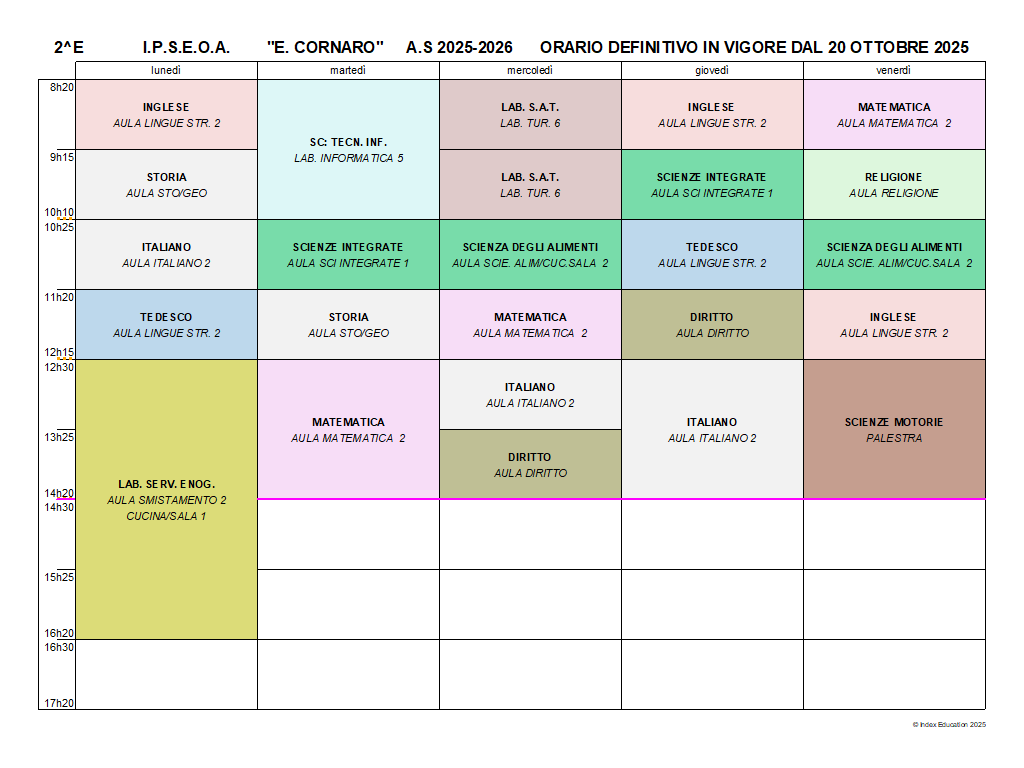I.P.S.E.O.A. “E. Cornaro” – Orario definitivo in vigore dal 20 ottobre 2025
