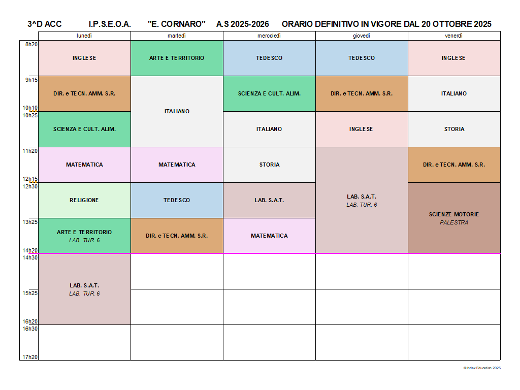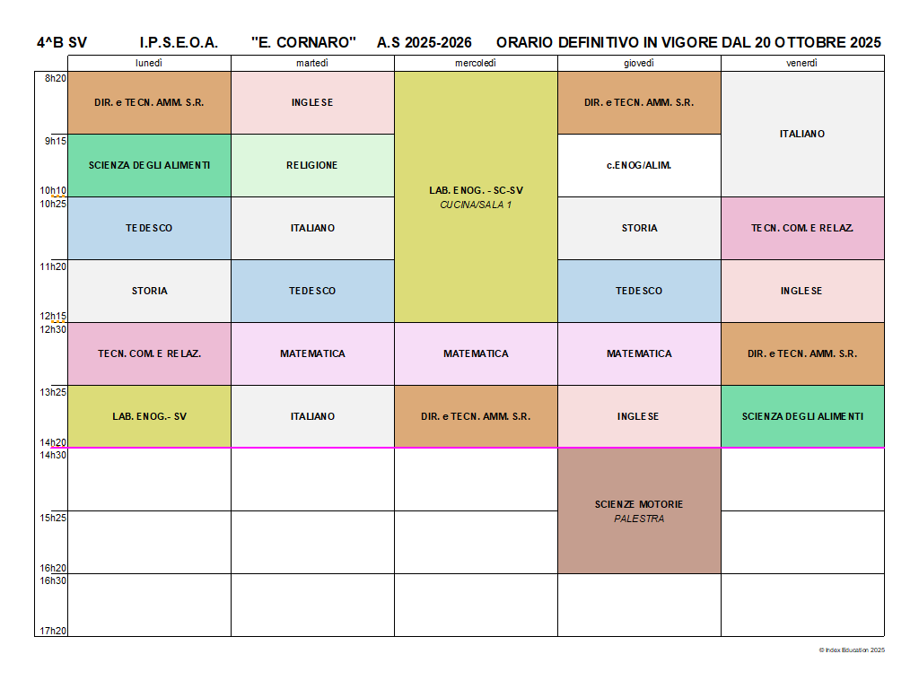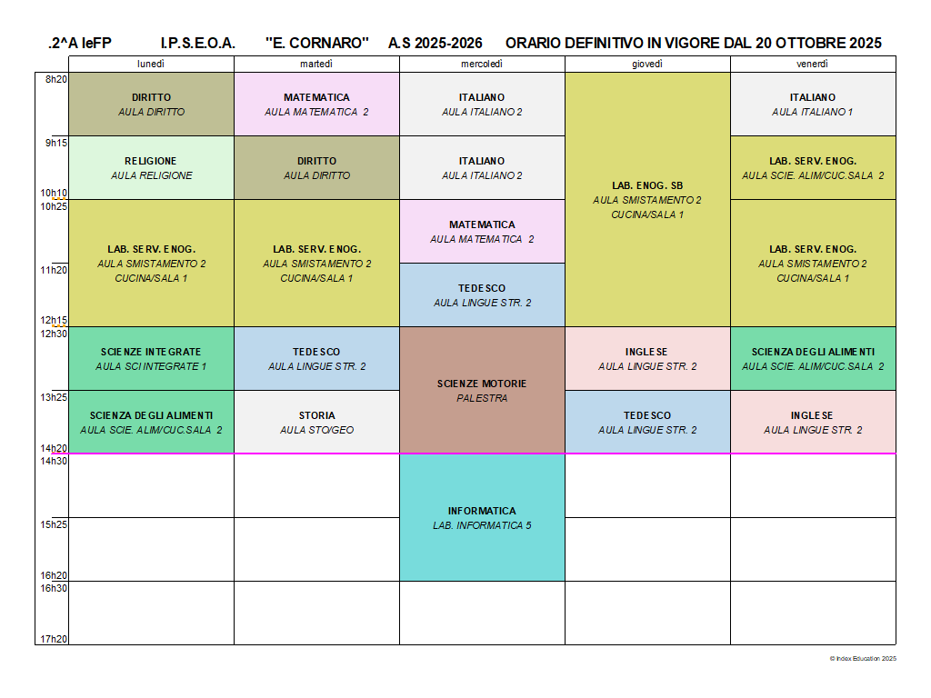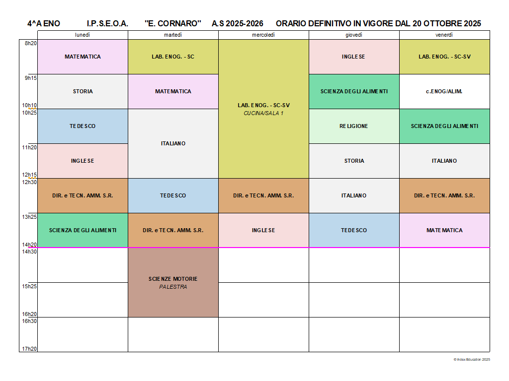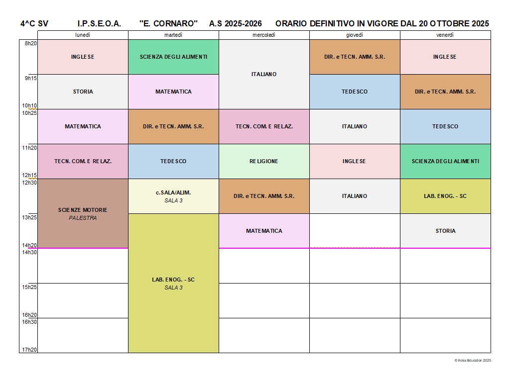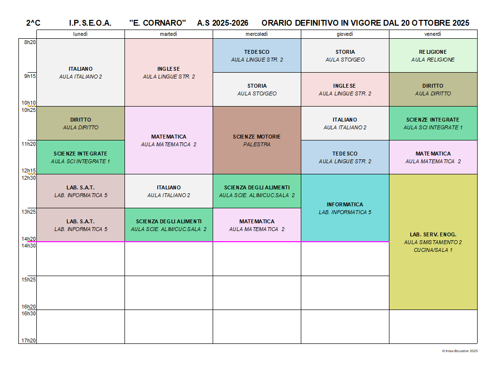 I.P.S.E.O.A. “E. Cornaro” – Orario definitivo in vigore dal 20 ottobre 2025