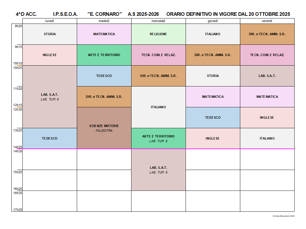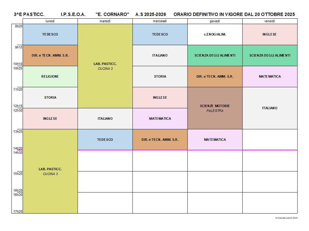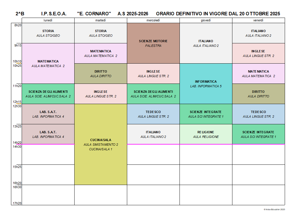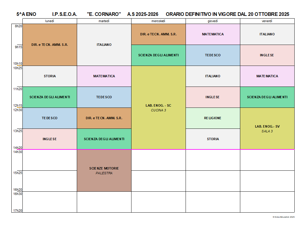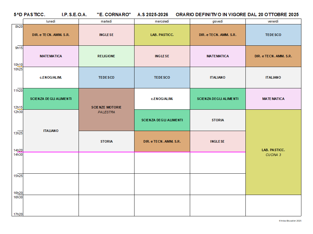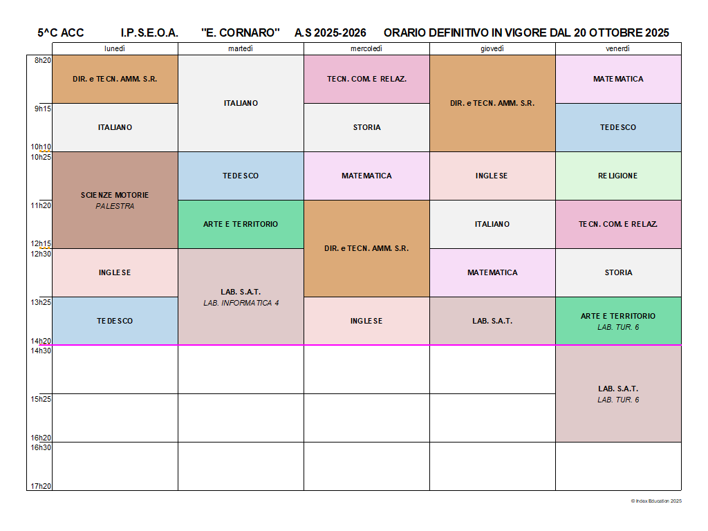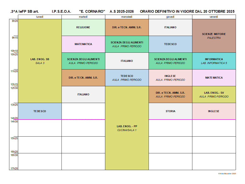 I.P.S.E.O.A. “E. Cornaro” – Orario definitivo in vigore dal 20 ottobre 2025